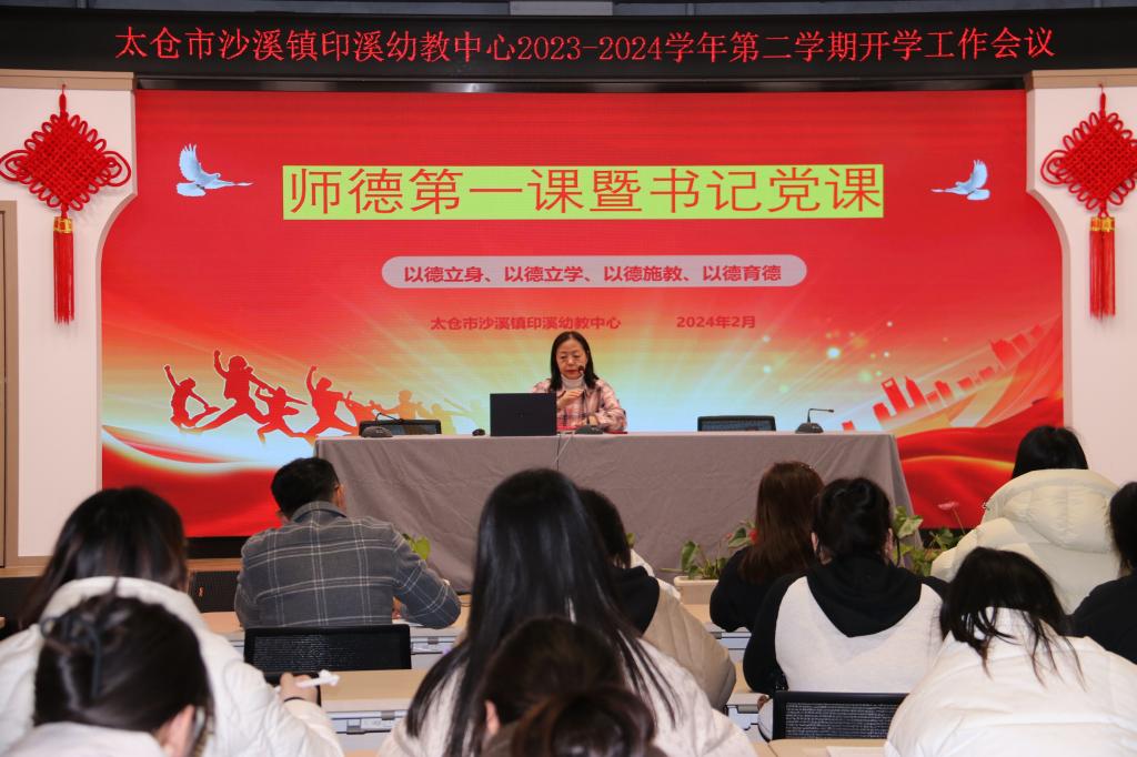 师风是师德的外在表现,教师素质是师德师风的内核要素。为持续加强教师队伍师德师风建设,提高教师队伍思想政治素养。2024年2月20日,新学期伊始,印溪幼教中心党支部书记陈黎冰以“师德第一课”为载体,面向全体教师开展师德教育暨专题党课。陈书记组织大家收看了《总书记的教书育人观》(之一)短片。并联系中心、幼儿园的思政工作展开阐述。通过本次专题党课学习,全体教师深刻理解了:2016年12月习近平总书记在全国高校思想政治工作会议上提出的新时代加强师德师风建设“四个相统一”的内容“即坚持教书和育人相统一,坚持言传和身教相统一,坚持潜心问道和关注社会相统一,坚持学术自由和学术规范相统一。”同时,作为幼儿离开家庭遇到的第一位教师,我们要积极思考如何发挥积极性、主动性、创造性,结合幼儿年龄特点和幼儿园教师专业特长,贯彻落实习近平总书记提出的:“政治要强、情怀要深、思维要新、视野要广、自律要严、人格要正”的“六要”素质,在自身岗位上务实、创新开展幼儿爱国主义,落实立德树人根本任务。